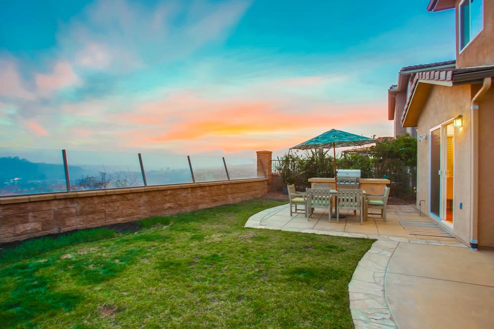 The backyard includes vast views, a grassy area, and patio space for outdoor furniture. This property is within walking distance to Sage Creek High School. The houses down below with no view sell for $100,000 to $200,000 more. This is one of the best values in 92010 - call your friends & family!