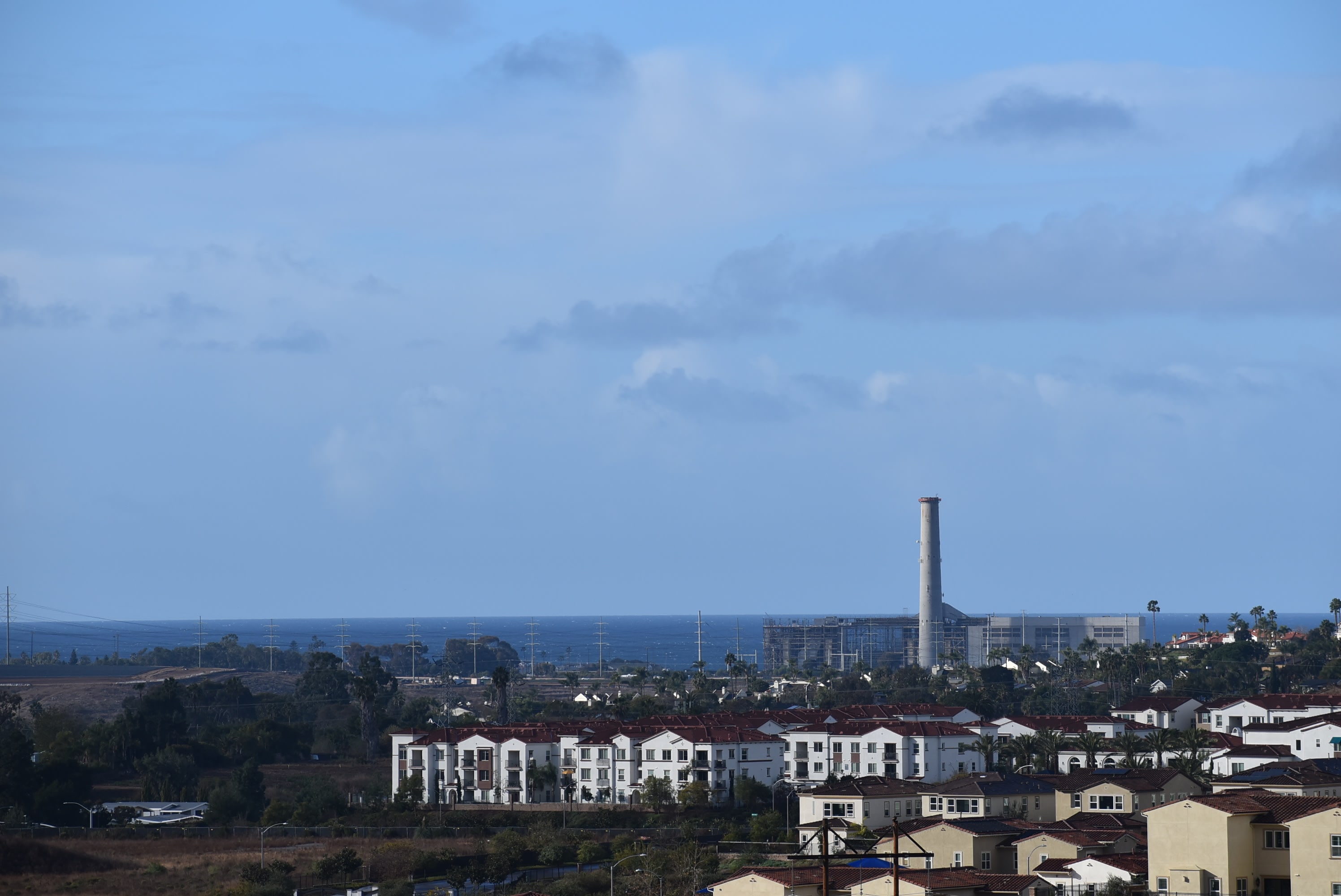 The master bedroom's private balcony offers unobstructed 180-degree views of Carlsbad, including the ocean! The power plant and smoke stack will be torn down by end of June, doubling the ocean views. Two walk-in closets with built-ins found in the master bathroom, along with additional ocean views.