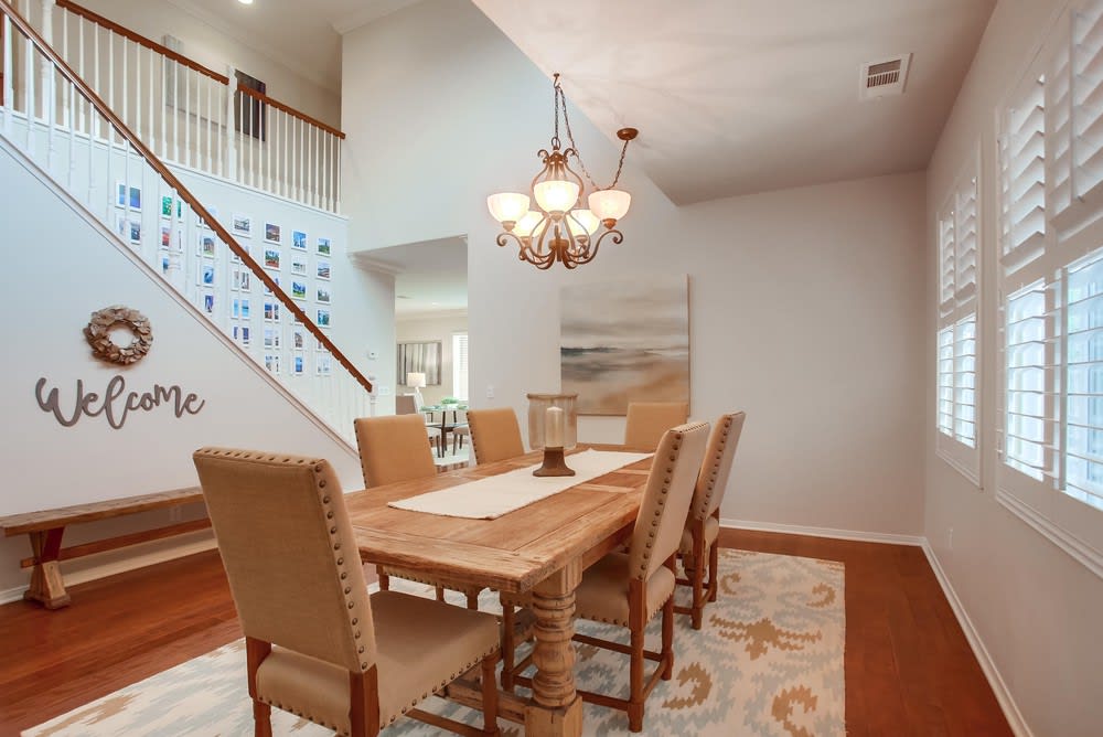 The large open great room includes a spacious kitchen, dining area, family room, and even a fireplace! The opportunities are endless when furnishing this space. Plenty of cabinetry in the kitchen along with the chef's island and barstool seating. The south-facing doors and windows allow plenty of natural light in throughout the day, keeping it bright all day long!