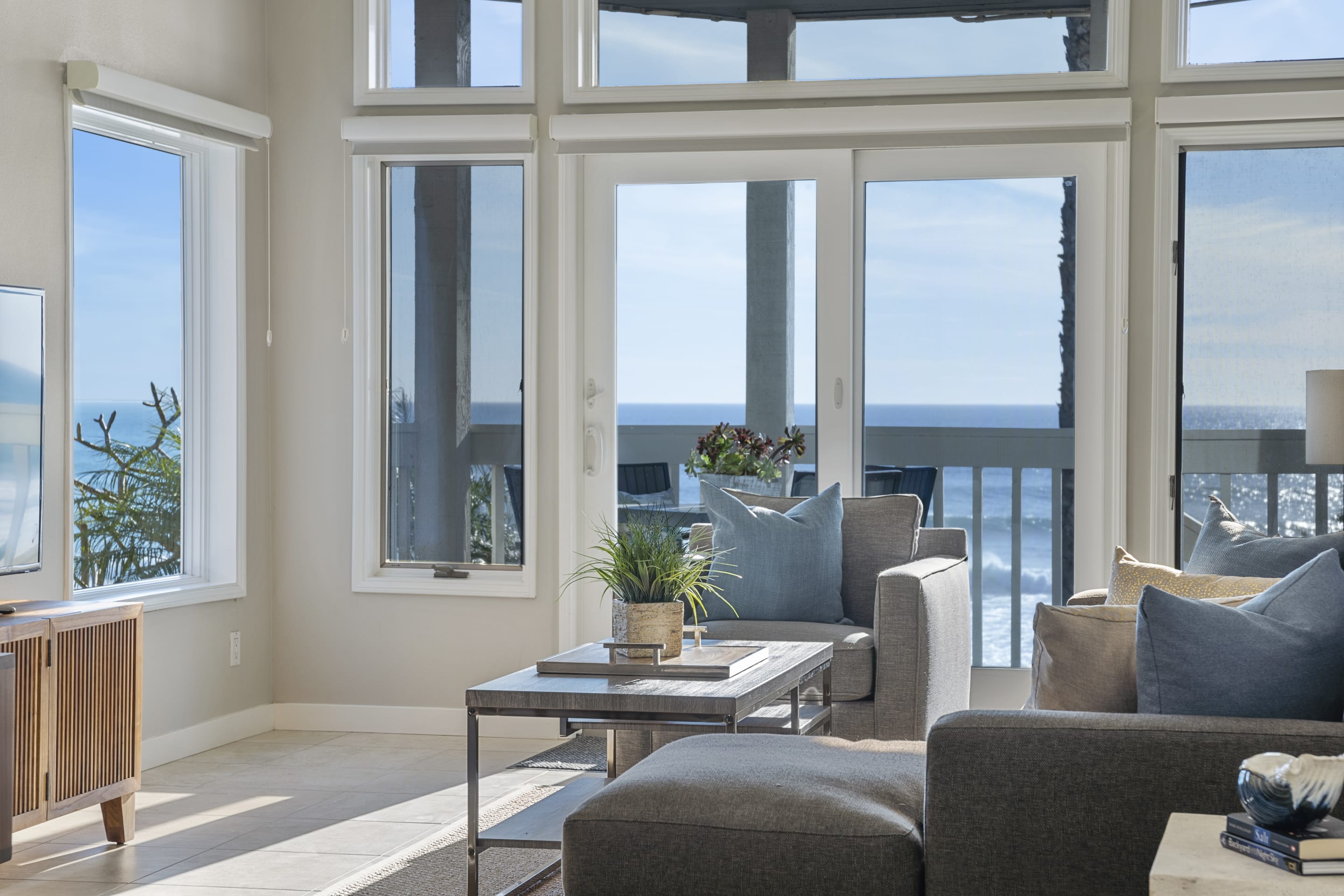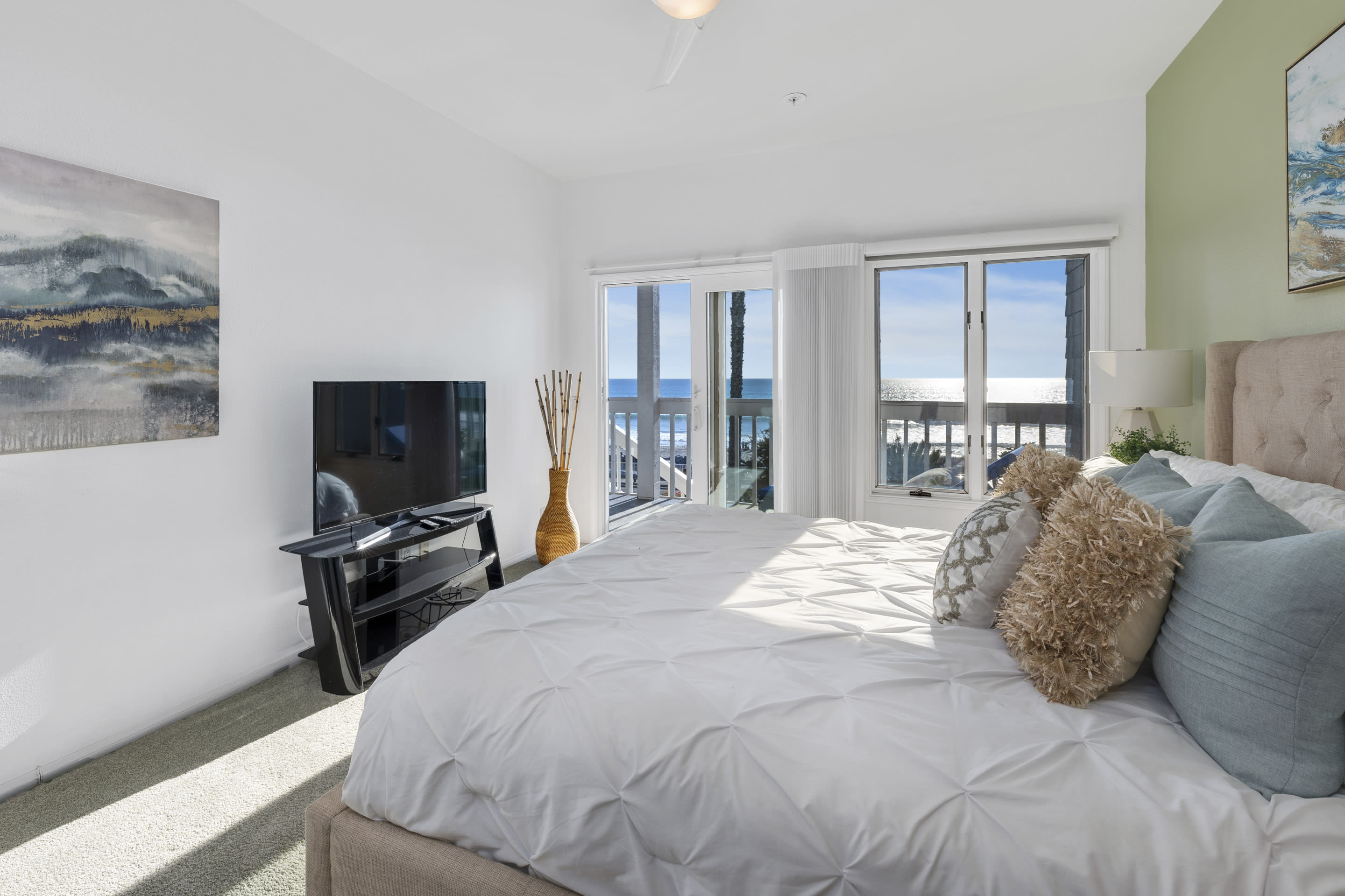 Enjoy spectacular ocean views from this highly upgraded single-level 2br/2ba, 1,478sf oceanfront home with no stairs! New kitchen, new baths, new flooring, new paint – just bring your toothbrush and enjoy the sunsets. Lie-down ocean view from the master bedroom too. South-facing windows provide plenty of natural light, and the home is well above the street to ensure minimal noise. Ample guest parking too. A fantastic opportunity to live the dream - rare to get this close to the sand AND have this big of a view for this $$.
