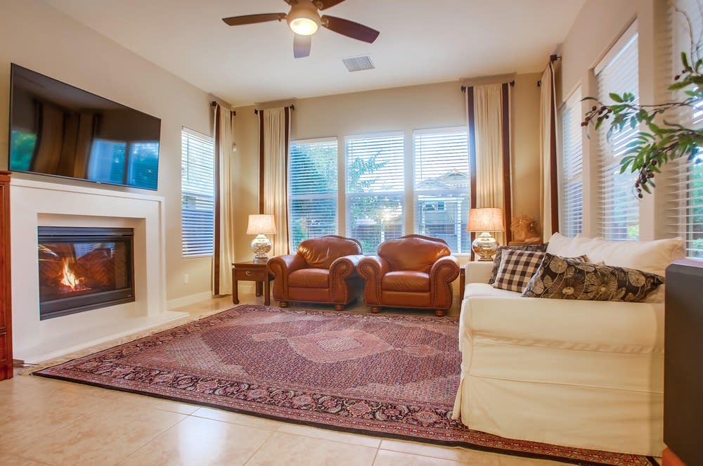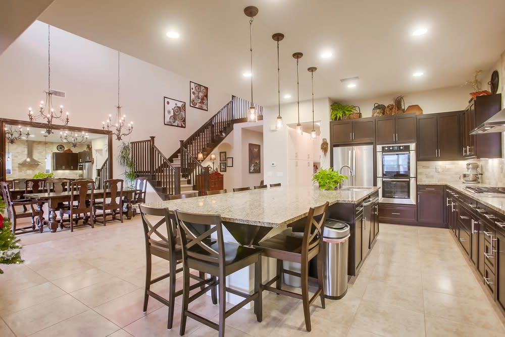 Downstairs features two-bedroom suites, an expansive great room, a large laundry room with extra fridge and cabinetry, plus large cantina doors leading to the backyard. With 10 foot ceilings and plenty of windows, the great room offers exceptional natural lighting throughout the day. In fact, the whole home features 51 windows!