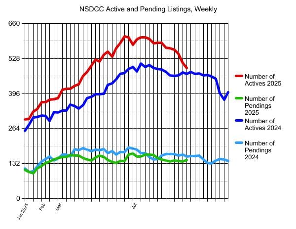 Last year, the number of actives were fairly steady from July to December. At this rate, the trend line should pass through and go under last year’s counts in the next week or two. Who had that on their bingo card a couple of months ago? All while the pendings are rock solid!