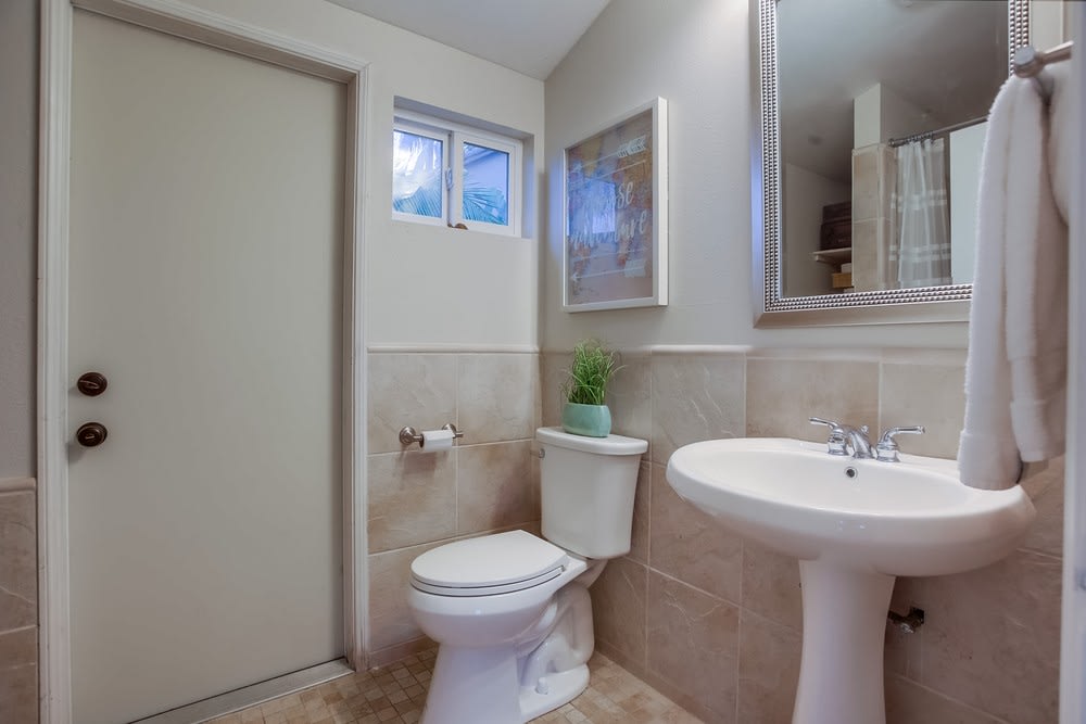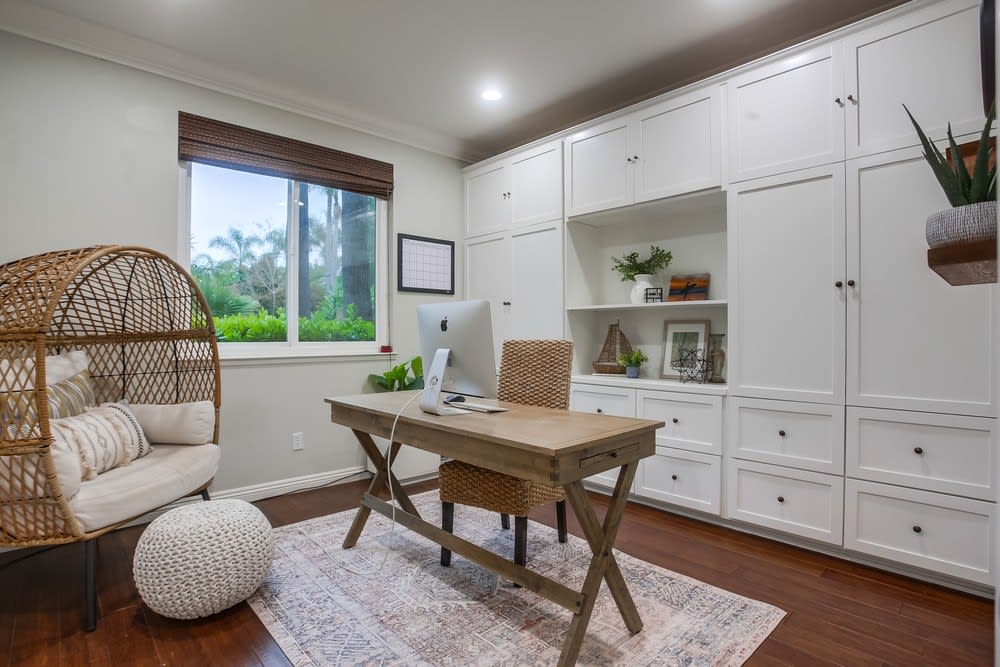 Downstairs there are two rooms that can easily be converted to official bedrooms. One is currently an office and the other is a bedroom. Was a 2 car garage plus tandem, but the previous owners converted it to another bedroom! Lots of space and its own bathroom, plus another door to the backyard!