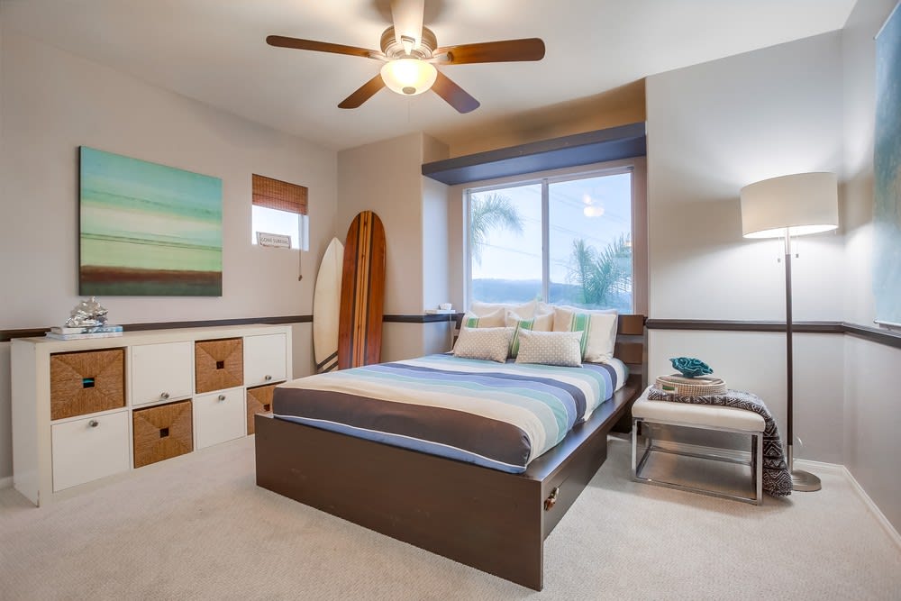 The spacious primary bedroom is in its own area of the upstairs with a huge walk-in closet and plenty of built-ins for storage. Two more bedrooms are upstairs in the open layout and many more windows!