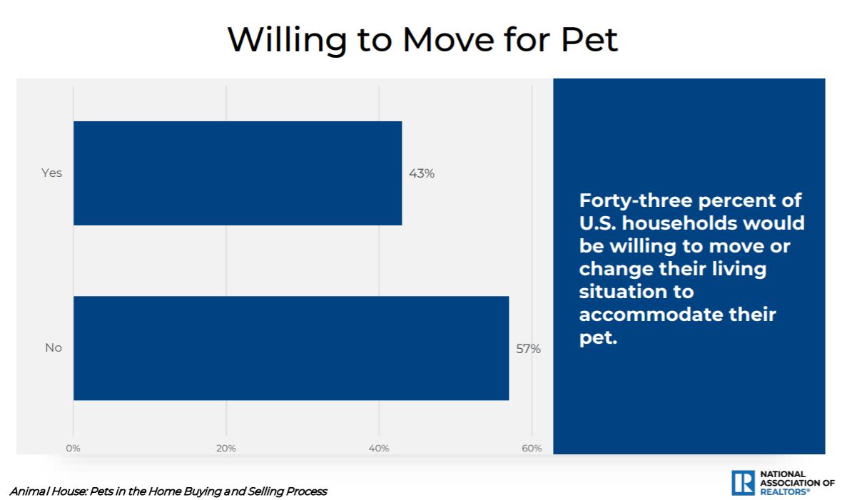 In April 2020, the National Association of Realtors conducted the survey, "Animal House: Pets in the Home Buying and Selling Process." Below you can find the overview of the survey: