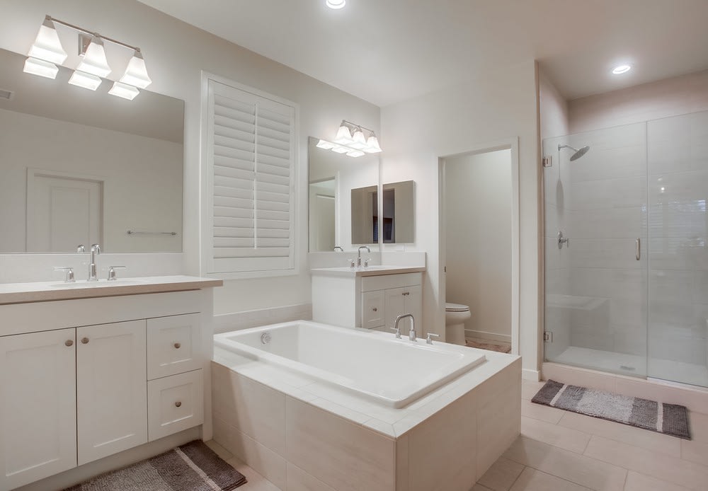 The master suite includes a view of the outdoors, no-slip tile, and a walk-in closet with not one, but two doors!