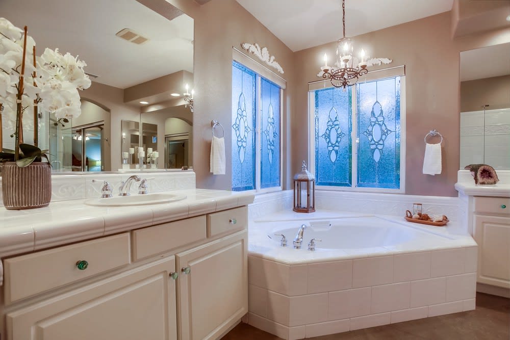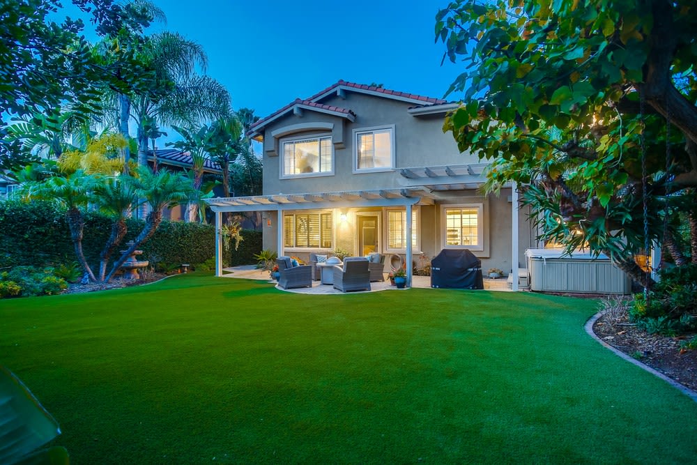 This home has stylish light-colored wide plank hardwood floors, plantation shutters, crown molding, newer central A/C and high-grade artificial turf, front and back. The downstairs features a bedroom with full bath, newer kitchen with walk-in pantry, 3-car garage with workbench and storage, and more! Upstairs starts off with an open loft/office space with built-in storage, perfect for the work and learn from home lifestyle we're all experiencing these days! Master suite with plenty of extra room, enough for another office, plus luxurious bathroom and walk-in closet. Very large second and third rooms feature Jack-and-Jill bathroom.
