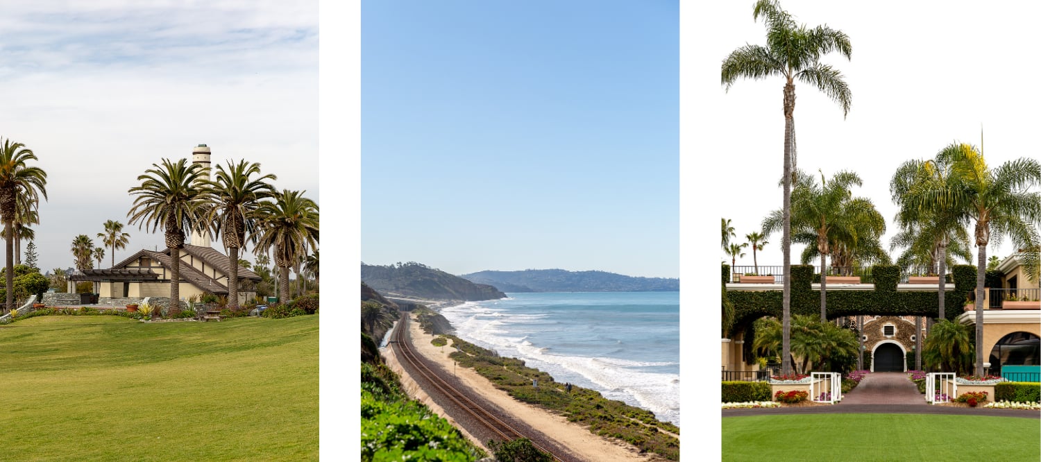 Del Mar is a beachfront community known for its affluent coastal living, white sandy beaches, nearby hiking at Torrey Pines State Reserve, and the famous Del Mar Racetrack.